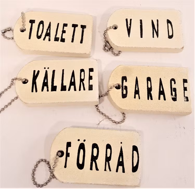 Hem › Hem, hushåll & trädgård › Nyckelbrickor i trä, x1 Nyckelbrickor i trä, x1 Text Källare Vind Toalett Förråd Garage 0 kr 15 kr 5 motiv att välja på. Toalett, förråd, källare, vind, garage.Längd 7 cm, bredd 4 cm. Flera populära produkter Fyrkantig ask med änglamotiv 5 kr 12 kr Plåtburk med flicka och hund, x1 69 kr 69 kr KÖP NU Hjärta - Världens bästa mormor 39 kr 49 kr Stöd för t.ex. skål snidat trä, x1 25 kr KÖP NU