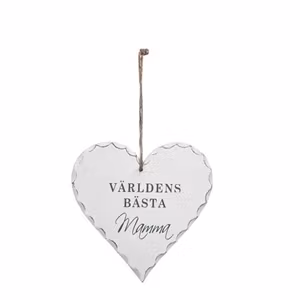 Med lätta fabriks slita inslag i den vita ytan och snöre upptill att hänga i. Text på den sida.