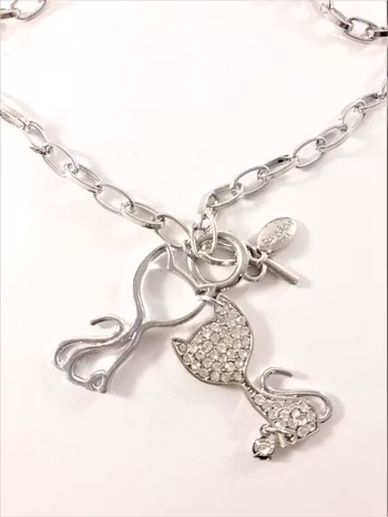 - En söt silverfärgad halskedja med två kattberlocker, varav en strassprydd.